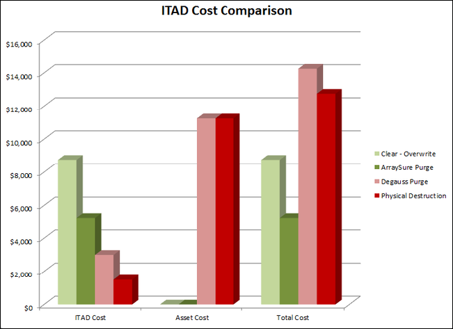 * NOTE: Total cost of Degauss Purging and Physical Destruction methods includes 100% loss of asset salvage value of the hard disk drives. This value is preserved by the clear/overwrite and firmware secure erase purge methods.